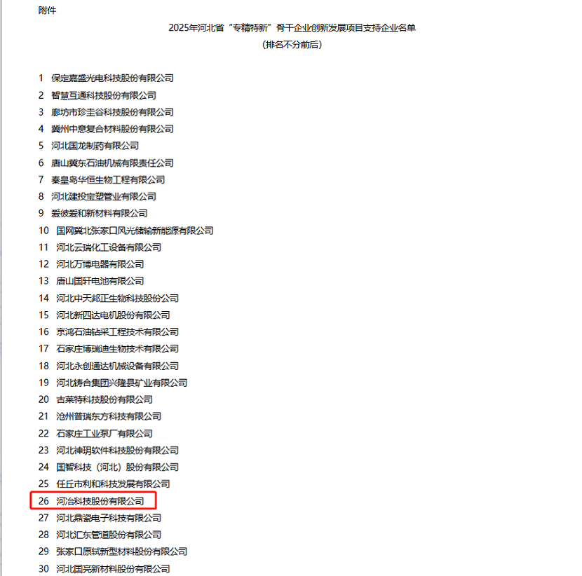 公司入圍河北省“專精特新”骨干企業創先發展項目名單